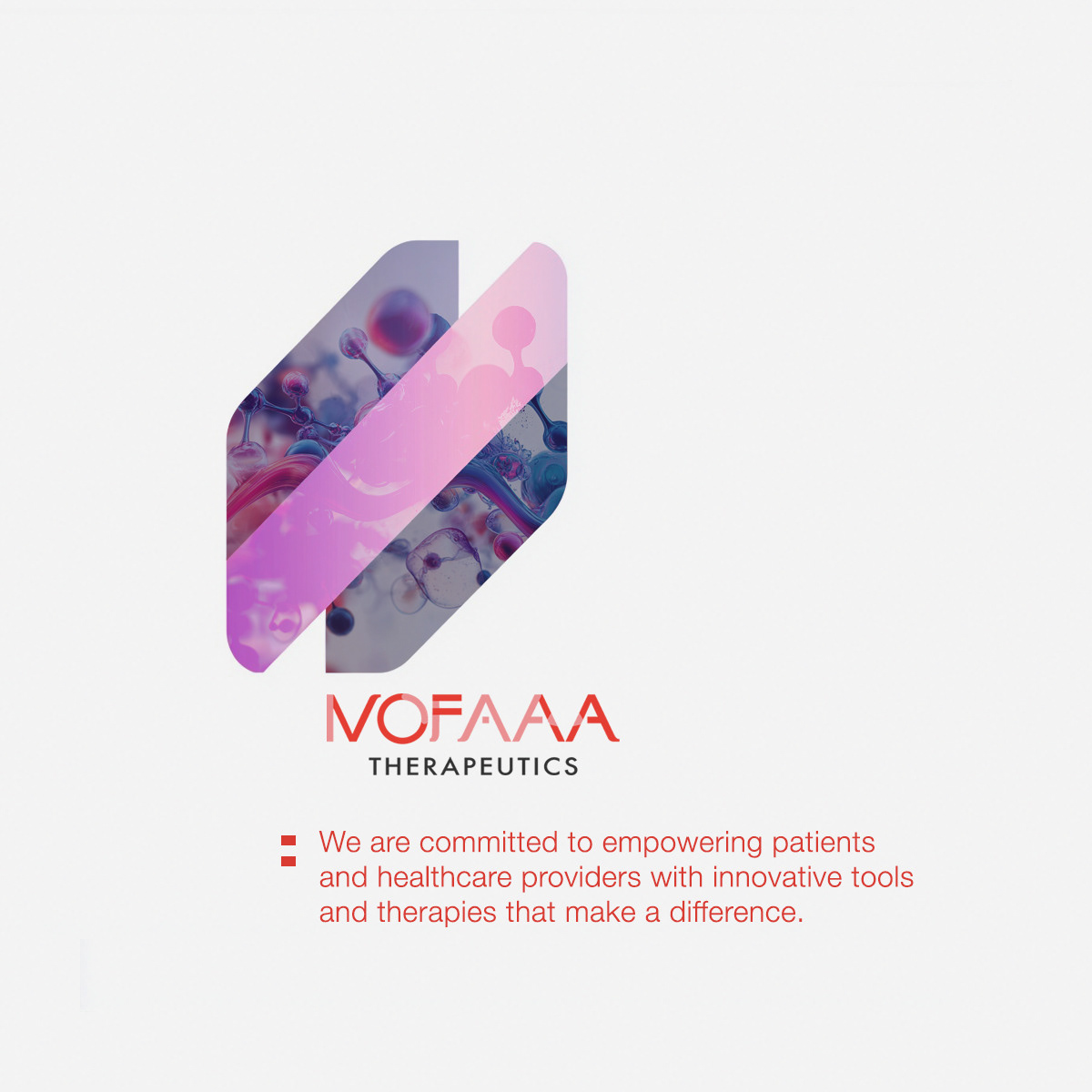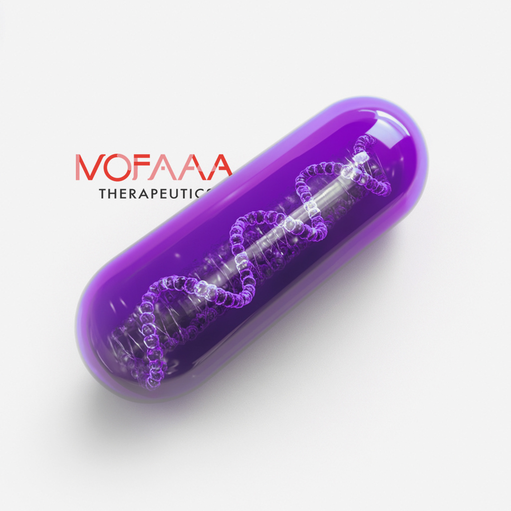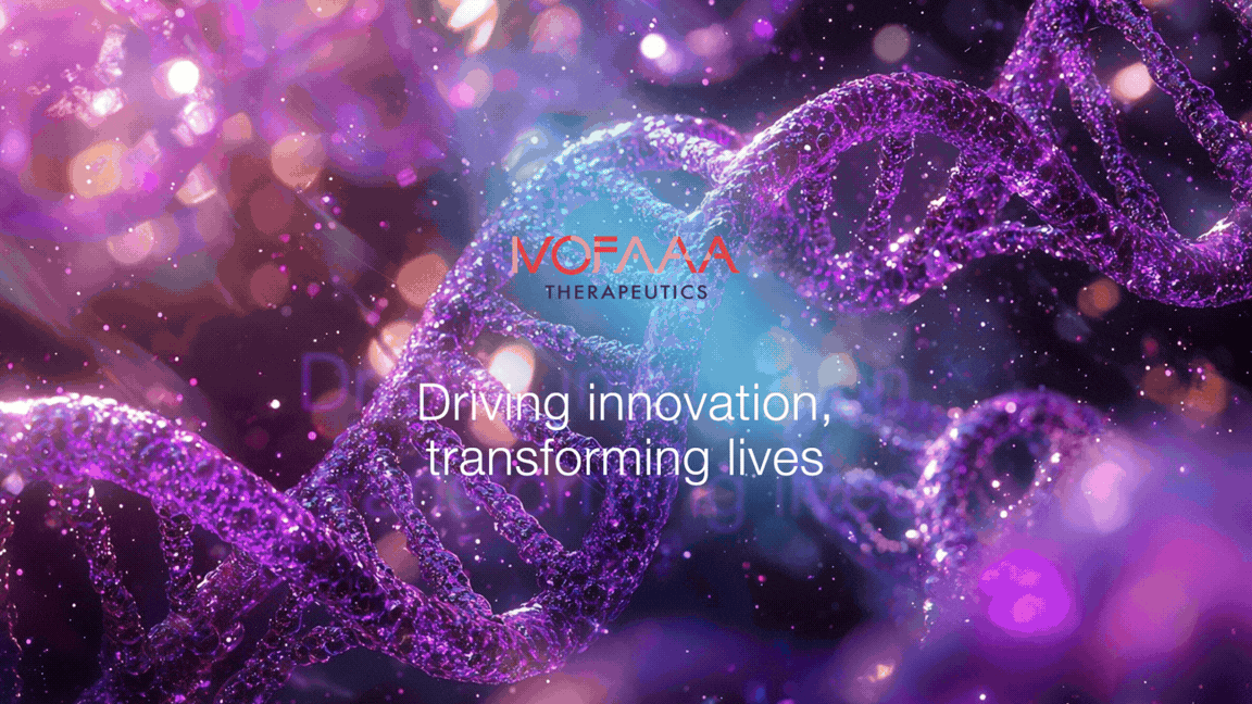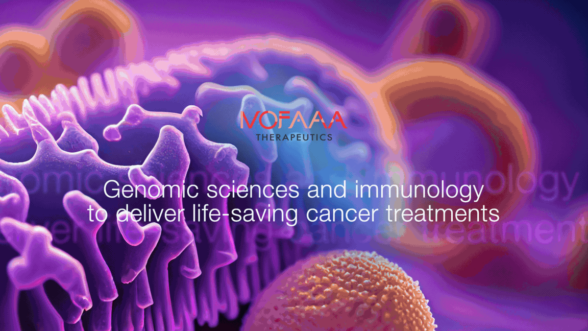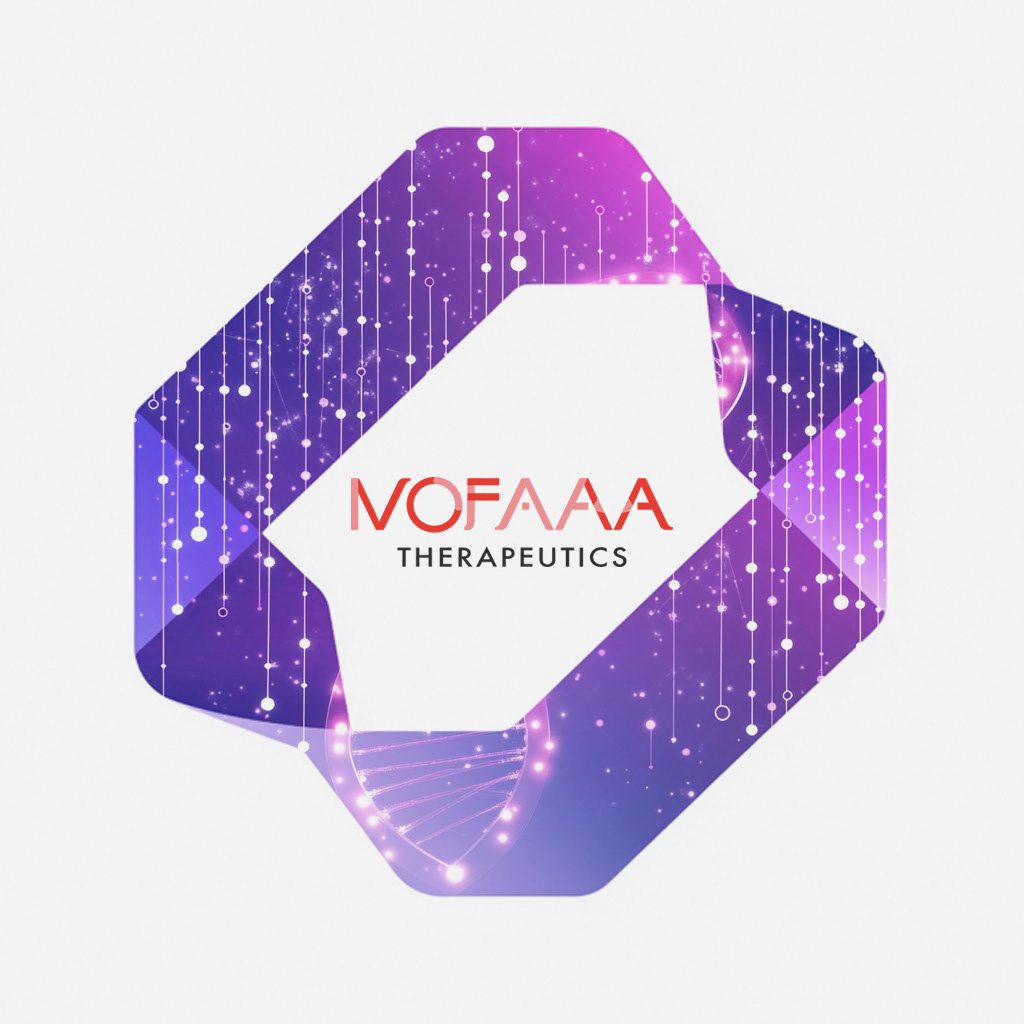 The NOFAA Therapeutics logotype blends bold typography with an abstract molecular-inspired graphic, symbolizing innovation and precision in biotechnology.