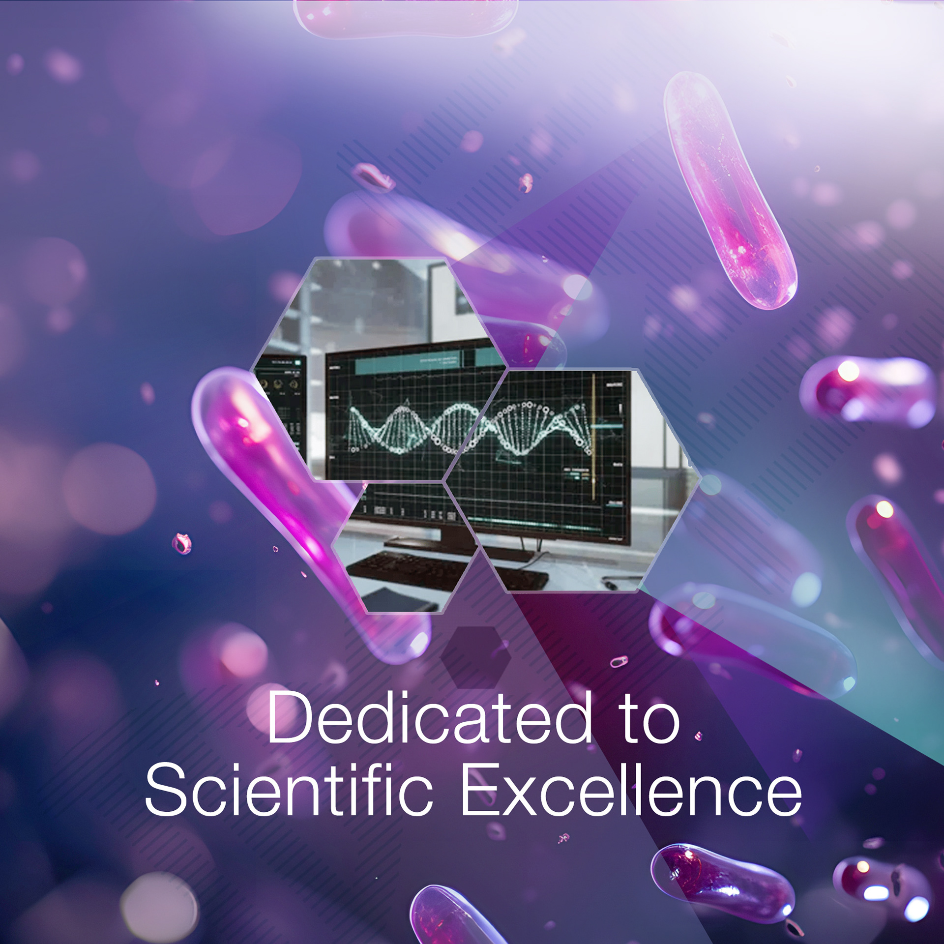 The gradient tones of purple and blue echo the precision of advanced research and evoke a feeling of trust.