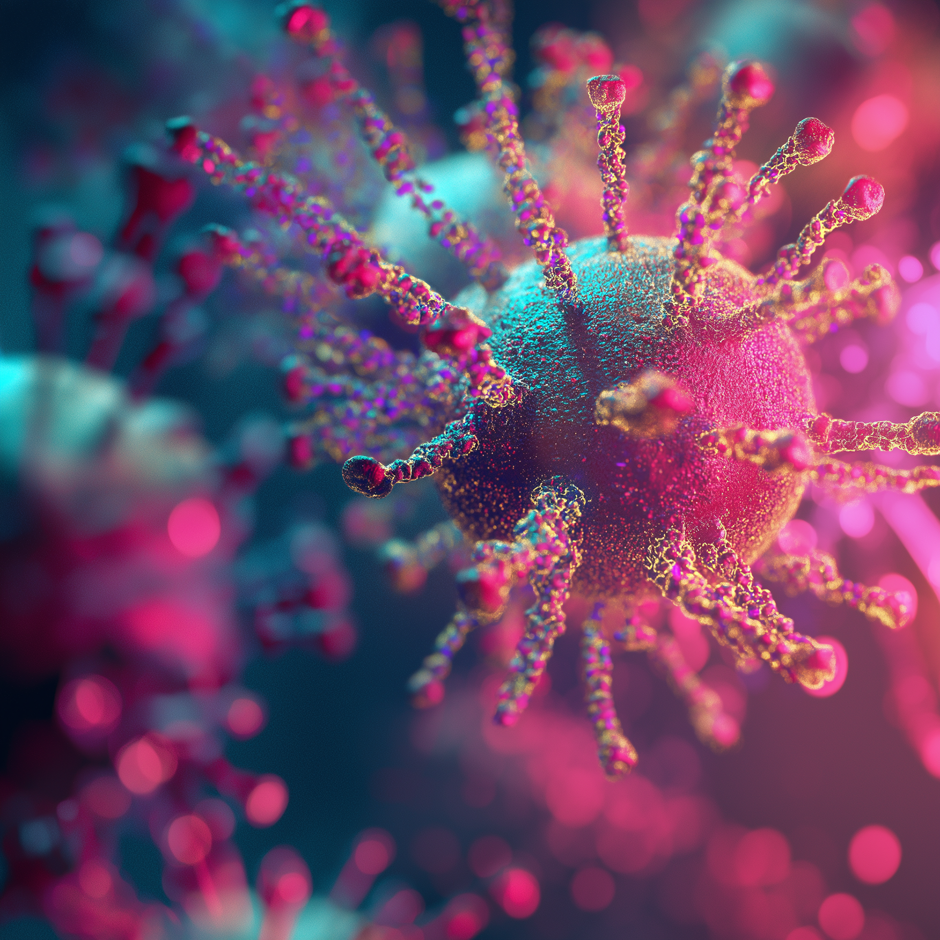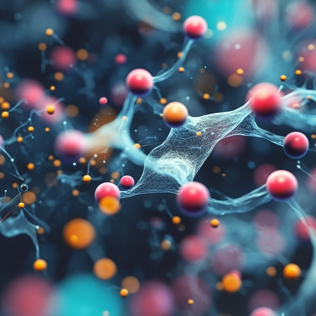 The selected visuals evoke microscopic structures like cells, molecules, and neural networks with vivid textures and dynamic compositions.